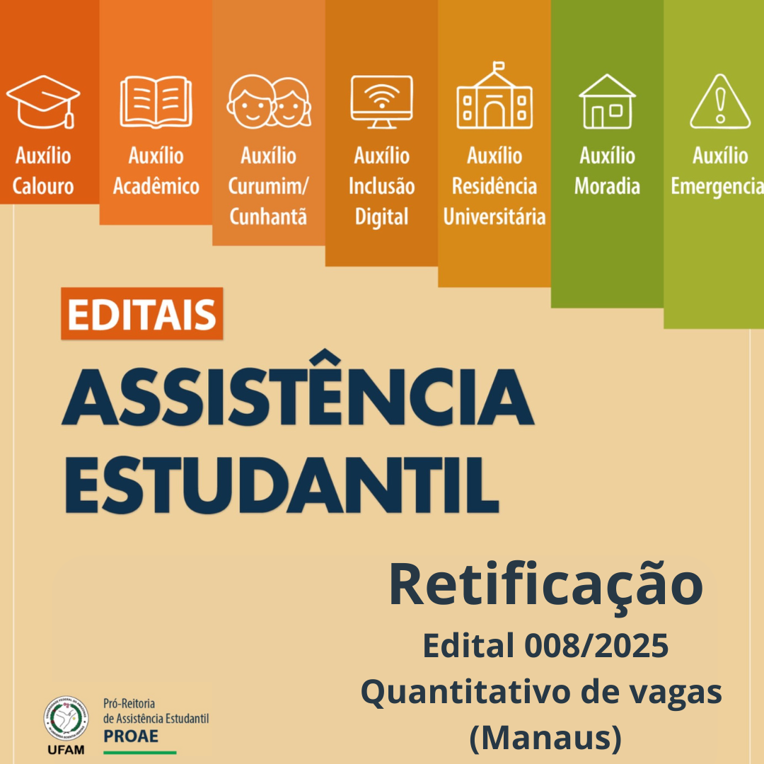 Editais da Assistência Estudantil - 2025 - Retificação do quantitativo de vagas do Edital 008/2025 para MANAUS